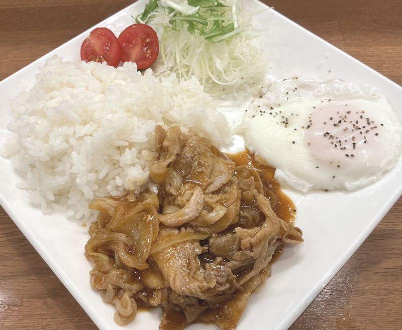 肉は山形三元豚、生姜は高知県産にこだわったポークジンジャー。 有機栽培の安心野菜を使った季節のサラダとともに。