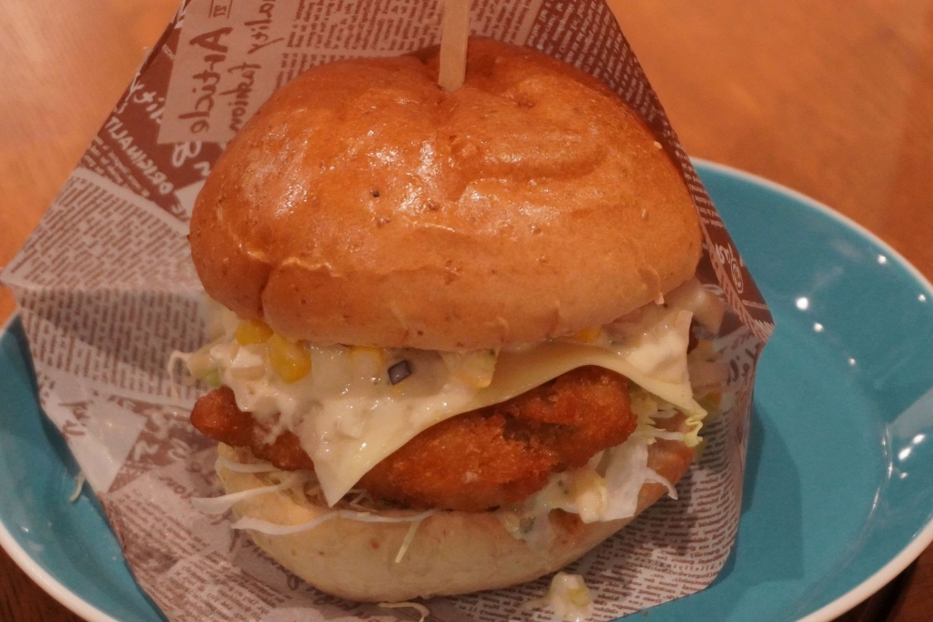 フィッシュフライにチーズをトッピングし、卵のタルタルソースをたっぷりかけて仕上げました。